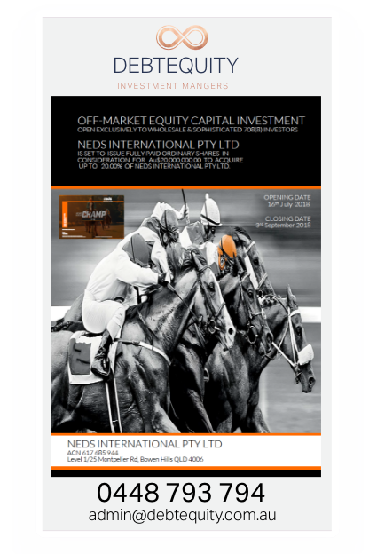 We recommend that you consult a licensed or authorised financial adviser if you require financial advice that takes into account your personal circumstances. EMAILadmin@debtequity.com.auPHONE+61 (0)448 793 794DEBT EQUITY INVEST PTY LTD ACN: 667 892 024